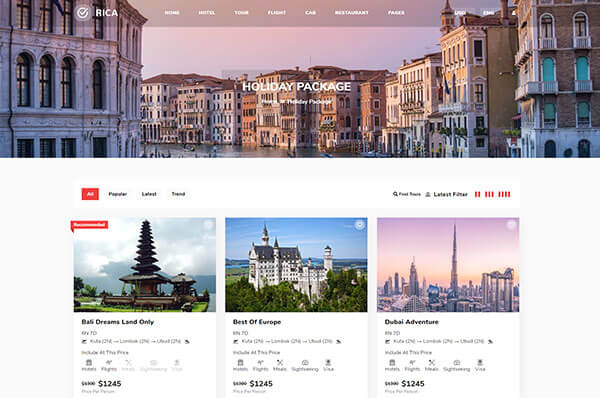 Rica has all the required pages of tour booking which include 3 demos, 30+ listing pages with the map integration, 8+ single detail pages and 4 other pages.